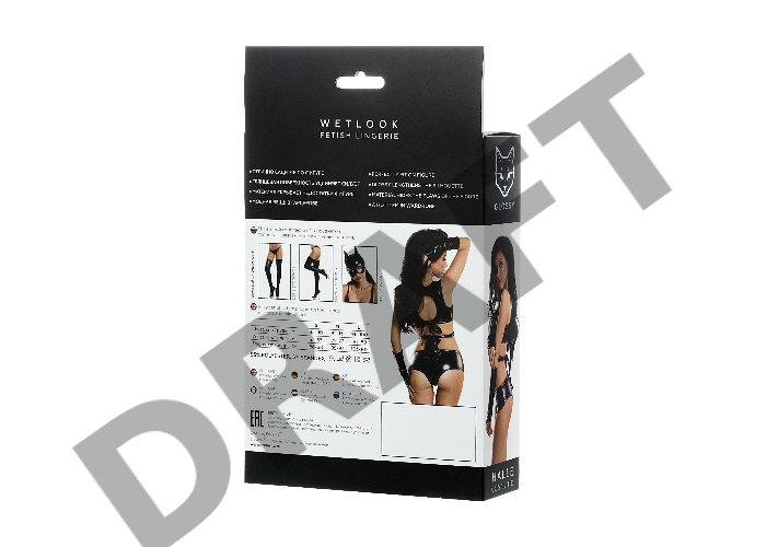Комплект Glossy из материала Wetlook (топ, мини-шорты и перчатки), черный, М