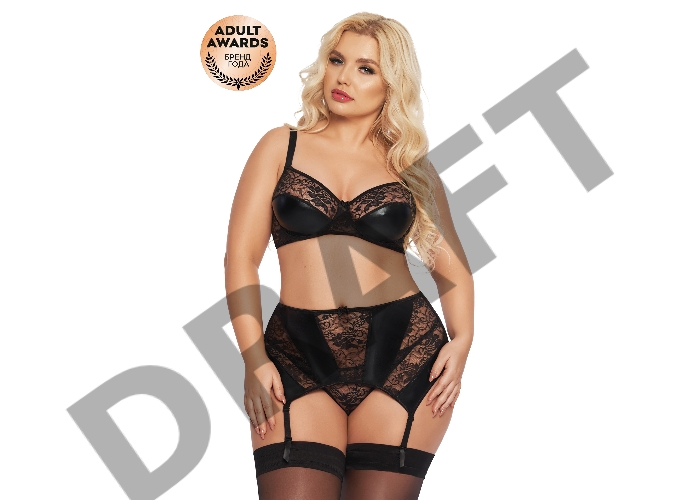 Комплект открытый SoftLine Collection Joana (бюстгальтер,пояс с пажами,стринги), черный, XL