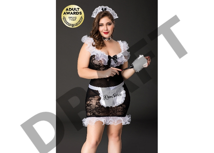 Костюм горничной Candy Girl Fanny (платье, ободок, чокер, фартук,метелка) черно-белый, 2XL