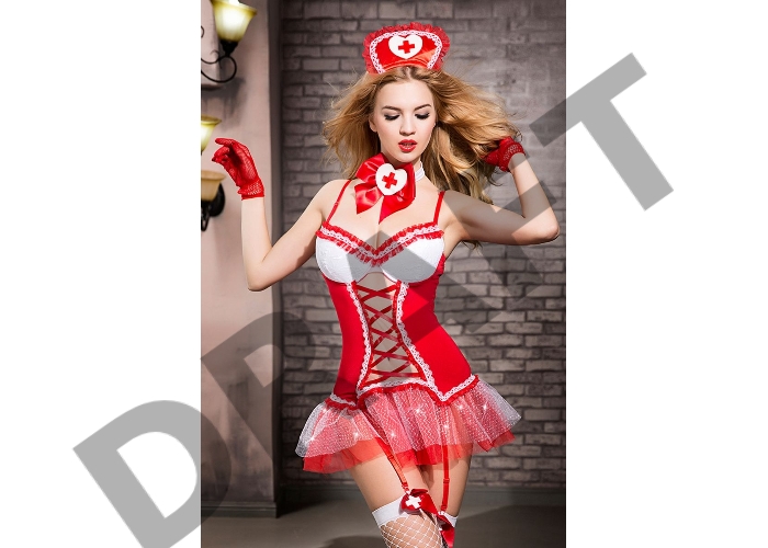 Костюм медсестры Candy Girl Gesabelle (платье, перчатки, стринги, чулки, чокер, головной убор, банты