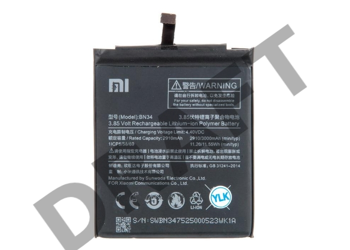Аккумуляторная батарея BN34 для Xiaomi Redmi 5A 2900mAh / 11.17Wh 3,85V